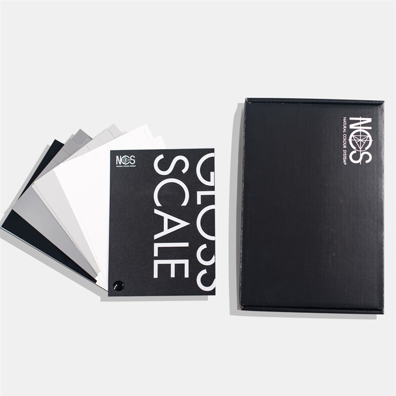- NCS光泽标尺是一个小型扇卡,里面的色样可以呈扇形打开,也可以按颜色和光泽度分开取出,放在不同的表面做比照使用。根据NCS色彩空间里的亮度分布,NCS光泽标尺包括灰度尺里的四种颜色,分别是白色、浅灰色、中灰色和黑色。在每个颜色区域里面从全哑到高光共分为七个光泽级别。每个色样上面都有光泽级别名称、光泽值、NCS颜色编号以及近似亮度值等信息,便于彩色选择和比照。请留意我们的产品附带了一块小白布,是用来拭擦光泽度标尺上的指纹印的,因为在有光泽的表面是非常容易留下指纹的痕迹。请使用该白布轻柔地抹标尺的表面令其清洁如新,切不可用力猛擦。为保持所有哑光产品的表面,也请勿用该白布擦拭。