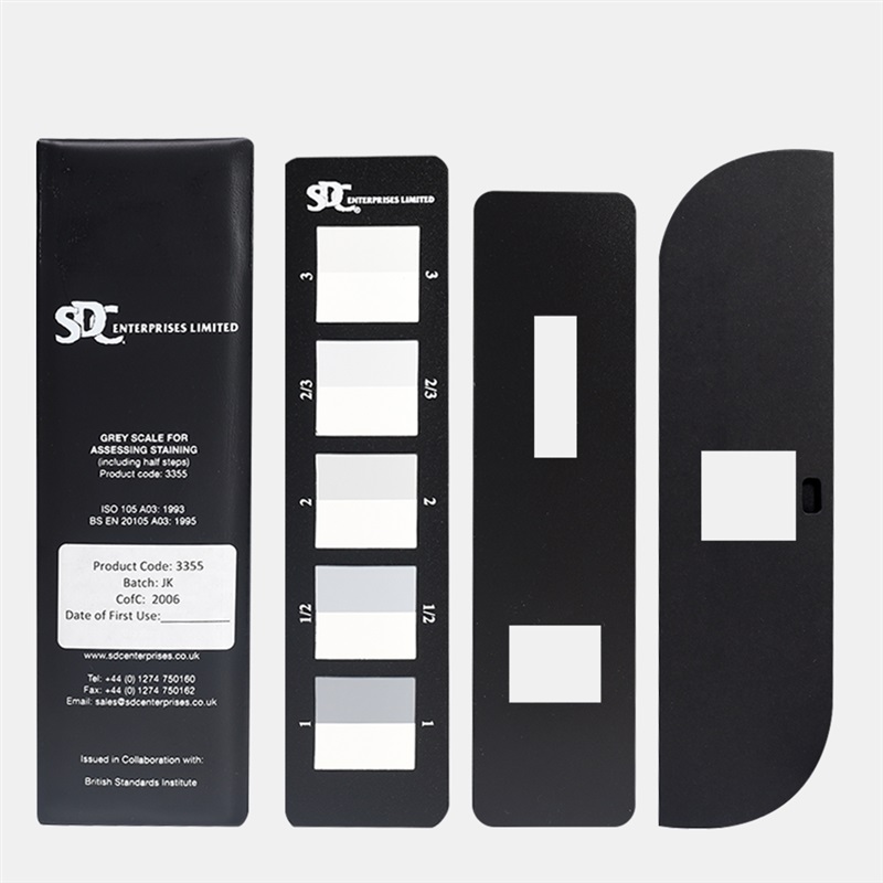 - 用于评估色牢度测试中的变色、沾色,分1-5级,半级递增,装于包装套内